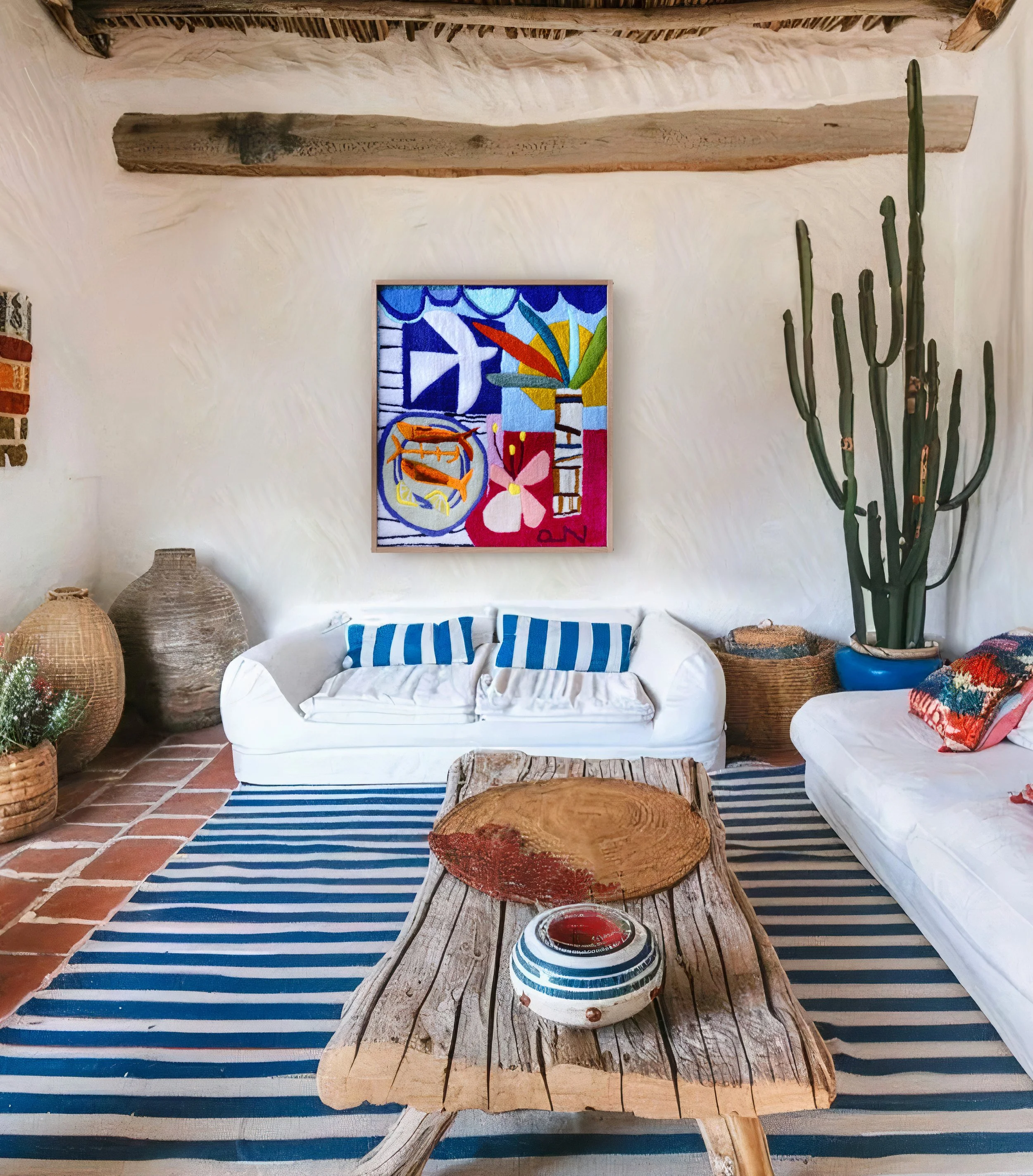Wool on monks cloth.
